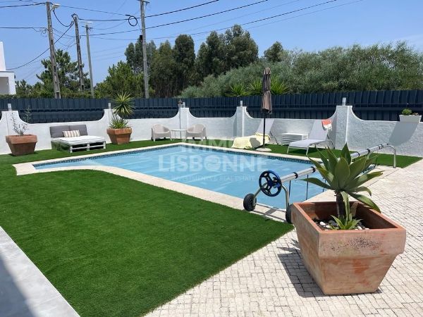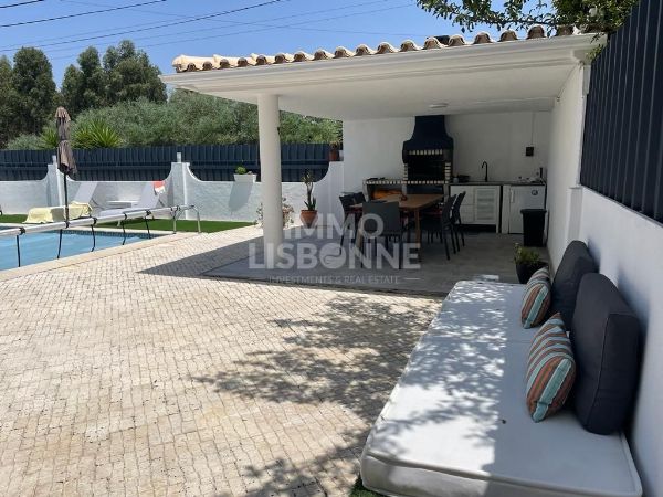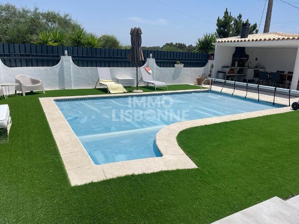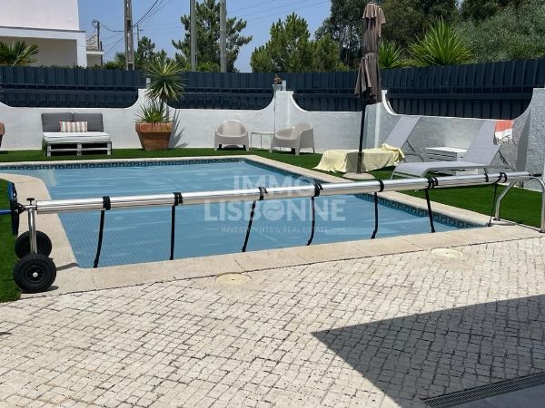 Bien plus disponible – À 25 minutes au sud de Lisbonne | belle maison indépendente | T3/T4 | 244,69 m2 de construction | Terrain 489,50 m2 | belle piscine| grand jardin | Terrasse | barbecue | vue dégagée | rue sans issus | SECTEUR CALME.
