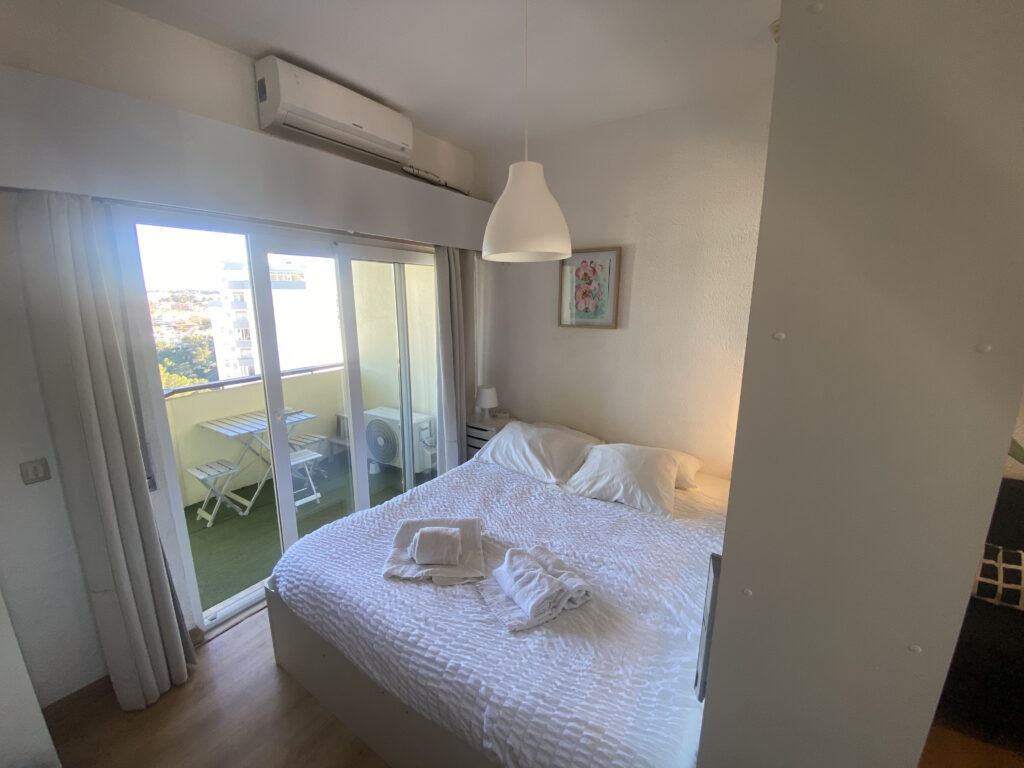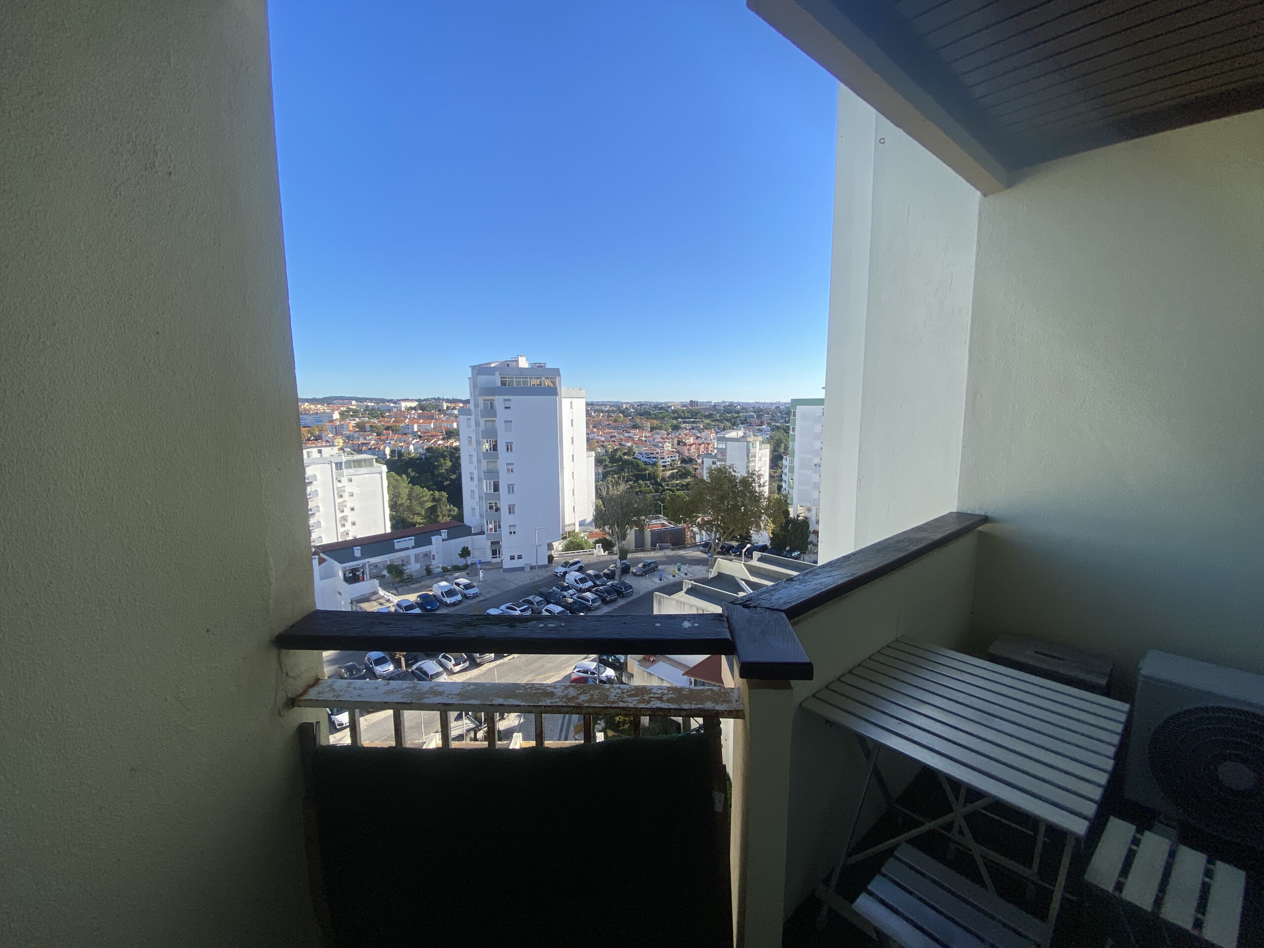 Studio à vendre Lisbonne – 37m² en bon état – Balcon avec vue dégagée – Proche plages & centre-ville – License AL active