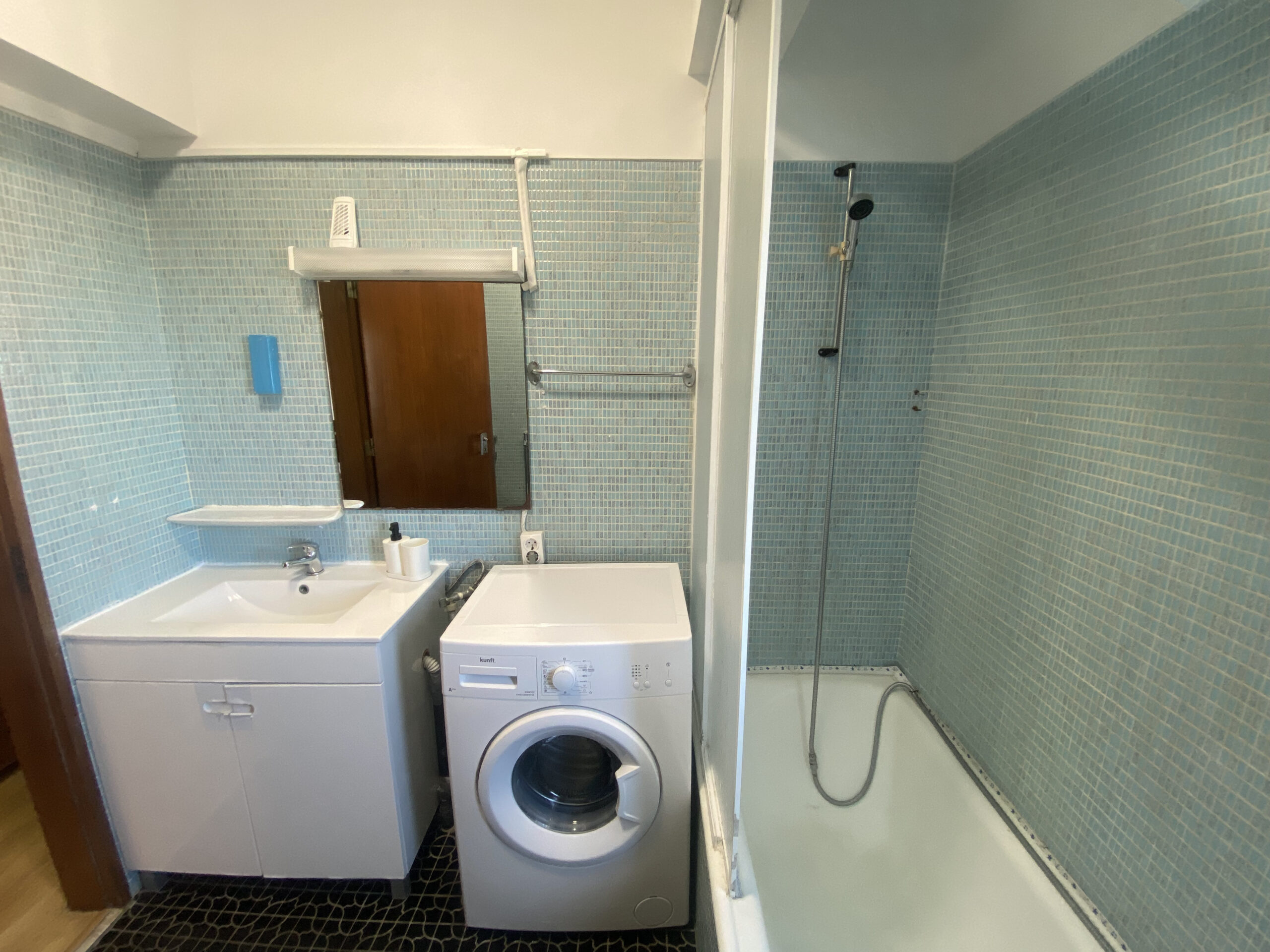 Salle de bains en bon état, avec douche