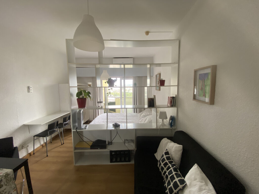 Studio à vendre Lisbonne – 37m² en bon état – Balcon avec vue dégagée – Proche plages & centre-ville – License AL active